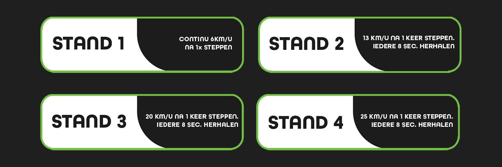 De krachtige 250W motor zorgt ervoor dat deze 8 seconden blijft rijden wanneer je met je voet afzet. De Kick&Go heeft 4 versnellingen, je begint in stand 1 en schakel door naar de volgende versnelling om meer vaart te maken.